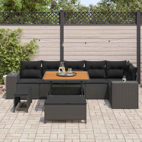 Garden Sofa Set with Cushion with Storage 9 pcs Black