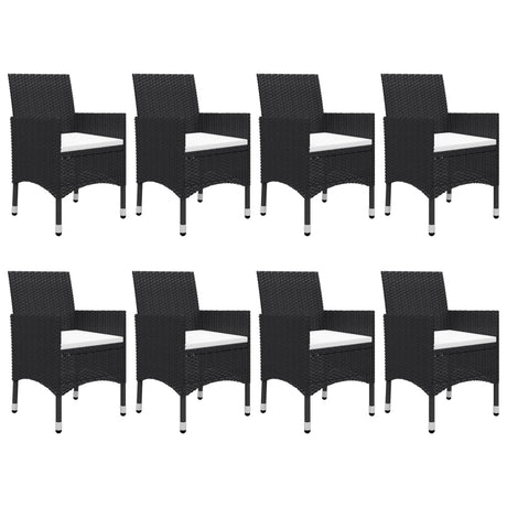 9 Piece Garden Dining Set Poly Rattan and Glass Black