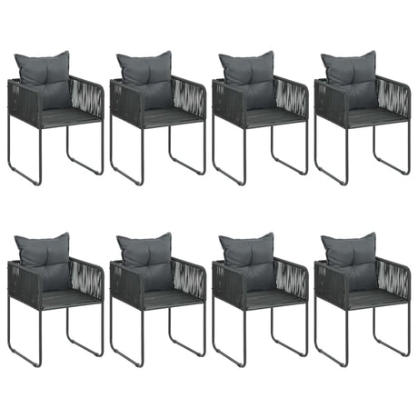 11 Piece Garden Dining Set with Cushions Black Poly Rattan