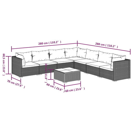 8 Piece Garden Lounge Set with Cushions Poly Rattan Black