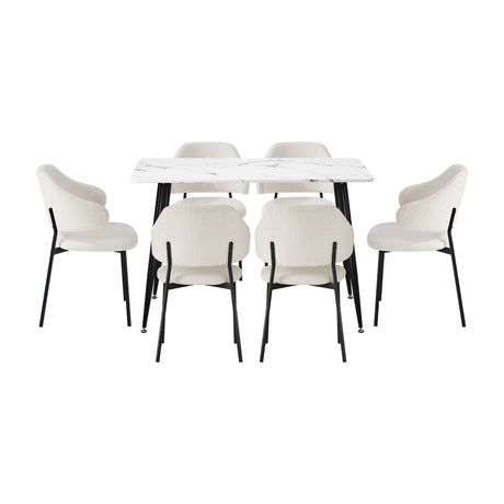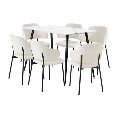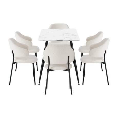 Oikiture Rectangle Dining Table with 6PCS Chairs Sherpa White
