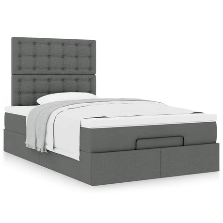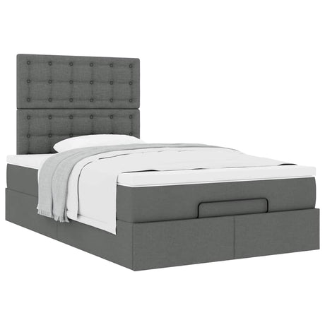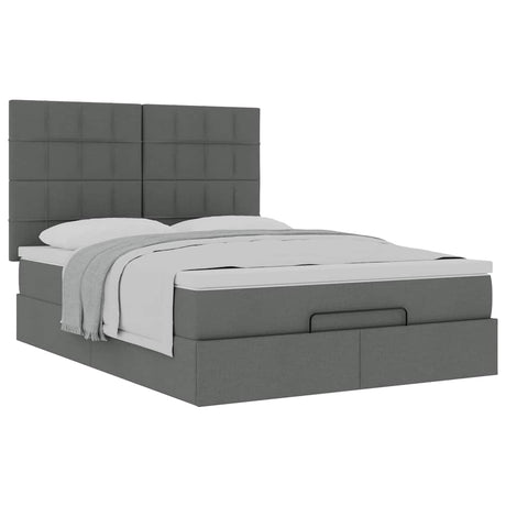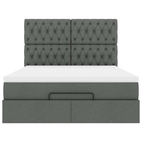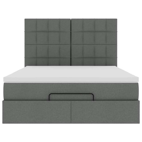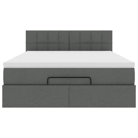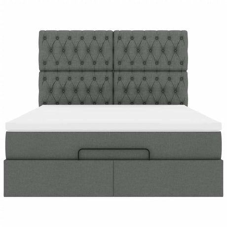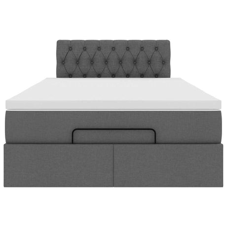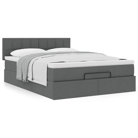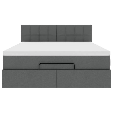 Ottoman Bed with Mattress Dark Grey Double Fabric