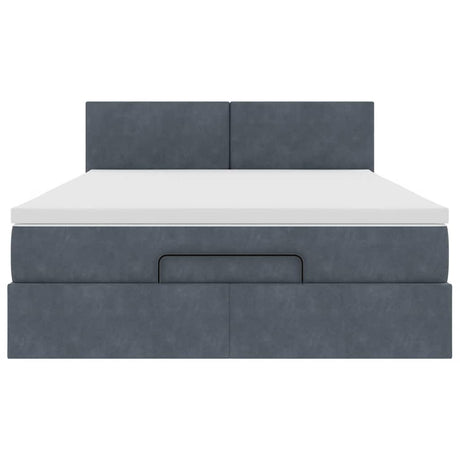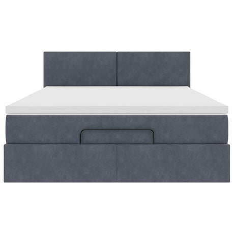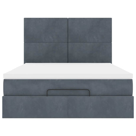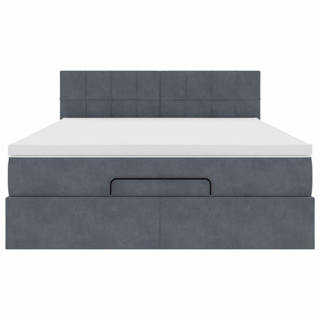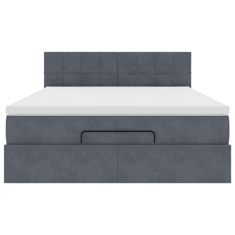 Ottoman Bed with Mattress Dark Grey Queen Velvet