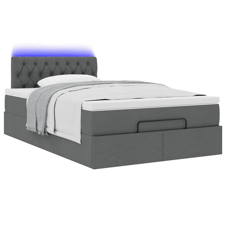 Ottoman Bed with Mattress & LEDs Dark Grey Double Fabric