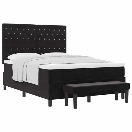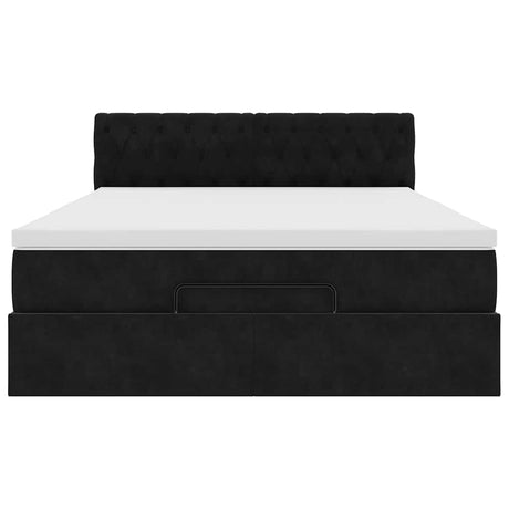 Ottoman Bed with Mattress & LEDs Black Double Velvet