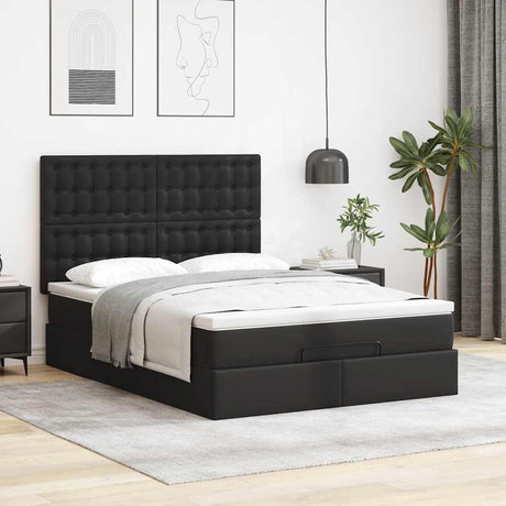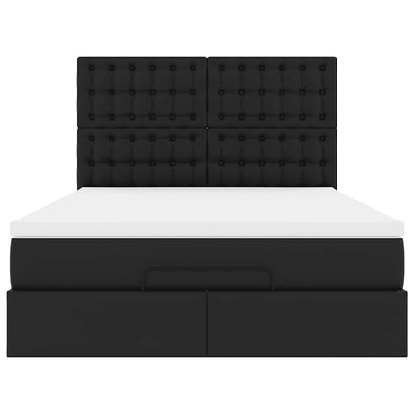 Ottoman Bed with Mattress & LEDs Black Queen Faux Leather
