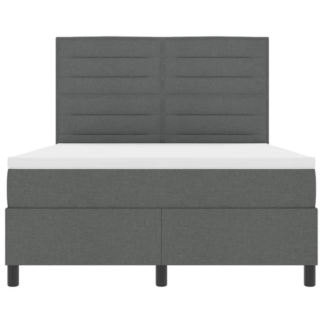 Box Spring Bed Striped Dark Grey and White 193 x 137 x 128 cm