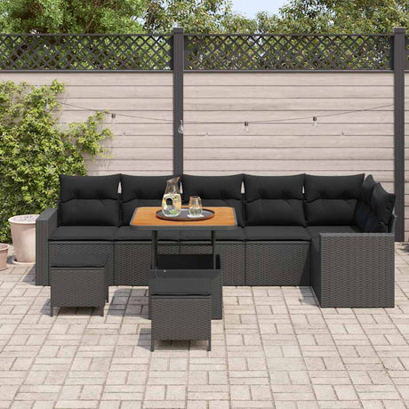 Garden Sofa Set with Cushion 9 pcs Black Poly rattan