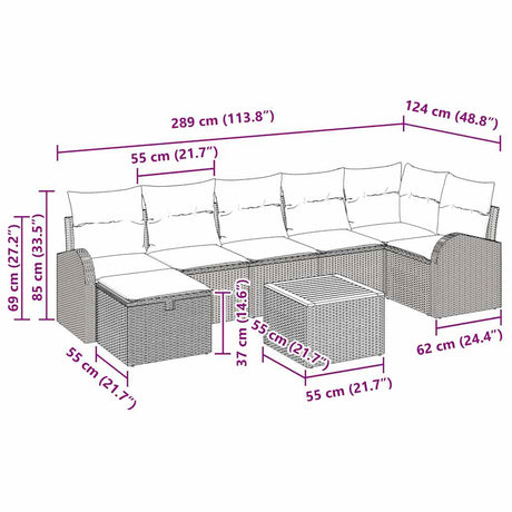 Garden Sofa Set with Cushion 7 pcs Grey Poly rattan