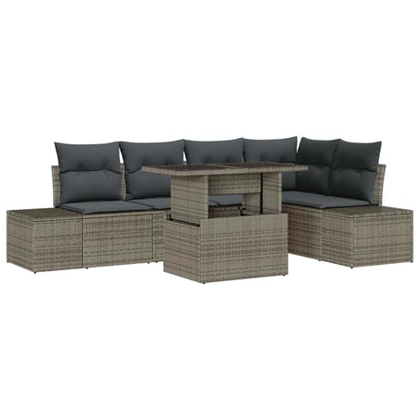 Garden Sofa Set with Cushion 7 pcs Grey Poly rattan