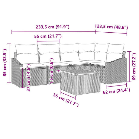Garden Sofa Set with Cushion 6 pcs Grey Poly Rattan