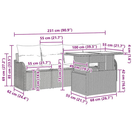 Garden Sofa Set with Cushion 5 pcs Grey Poly rattan