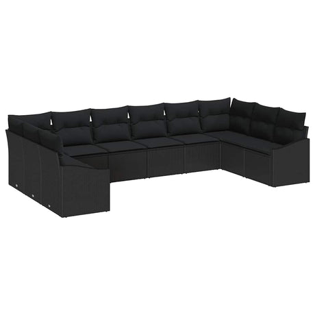 Sofa Set with Cushion 10 pcs Black Poly Rattan