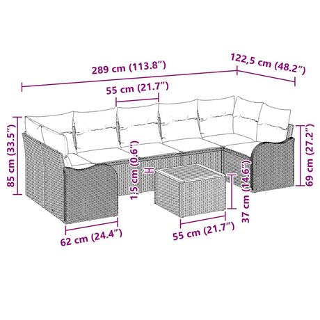 Garden Sofa Set with Cushion 9 pcs Grey Poly Rattan
