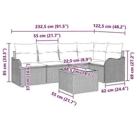 Sofa Set with Cushion 6 pcs Grey Poly Rattan
