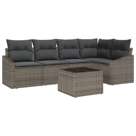 Garden Sofa Set with Cushion 6 pcs Grey Poly Rattan
