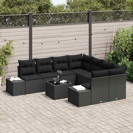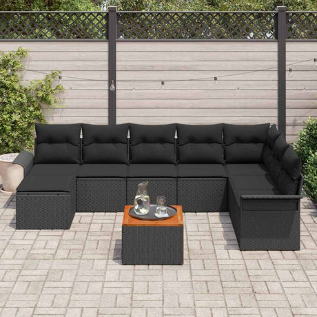 Garden Sofa Set with Cushion 9 pcs Black Poly rattan