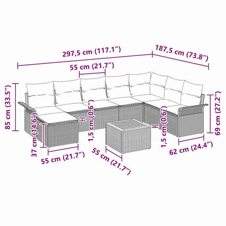 Sofa Set with Cushion 9 pcs Grey Poly Rattan