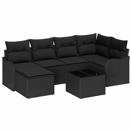 Garden Sofa Set with Cushion 7 pcs Black Poly Rattan