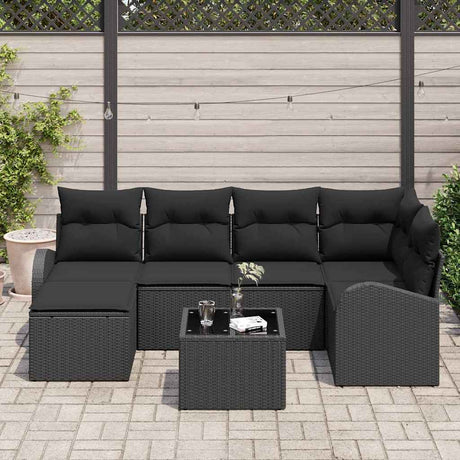 Sofa Set with Cushion 7 pcs Black Poly Rattan