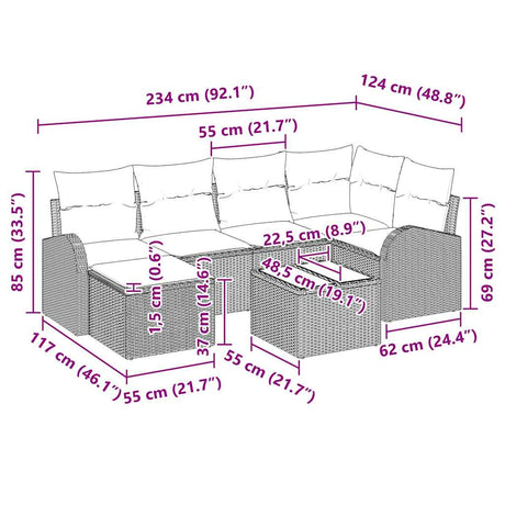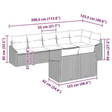 Garden Sofa Set with Cushion 7 pcs Grey Poly rattan