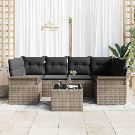 Garden Sofa Set with Cushion 7 pcs Grey Poly Rattan