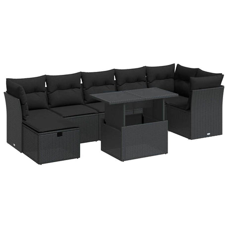 8 Piece Garden Sofa Set with Cushions Black Poly Rattan