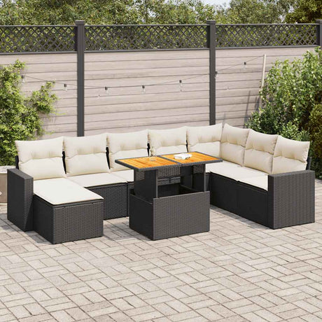 8 Piece Garden Sofa Set with Cushions Black Poly Rattan Acacia