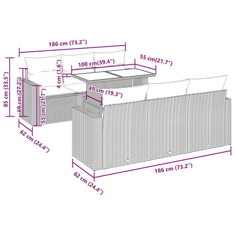 6 Piece Garden Sofa Set with Cushions Beige Poly Rattan