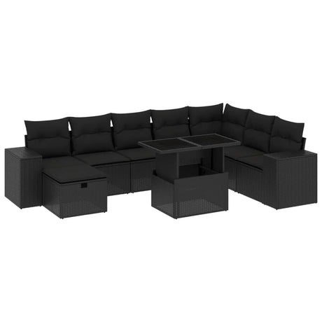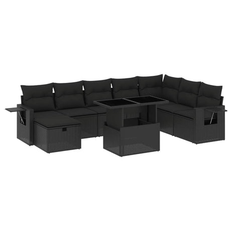 9 Piece Garden Sofa Set with Cushions Black Poly Rattan