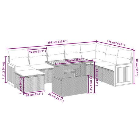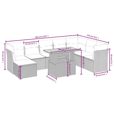 9 Piece Garden Sofa Set with Cushions Grey Poly Rattan