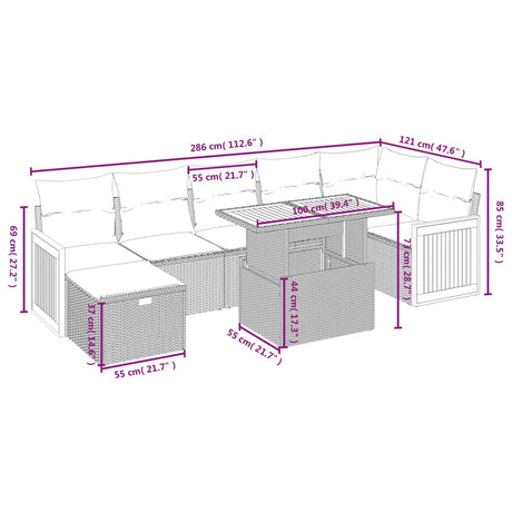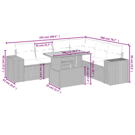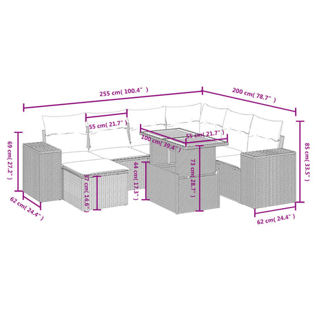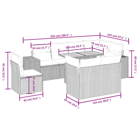 7 Piece Garden Sofa Set with Cushions Beige Poly Rattan