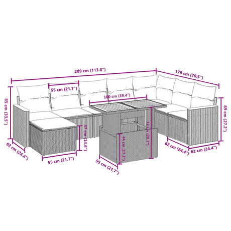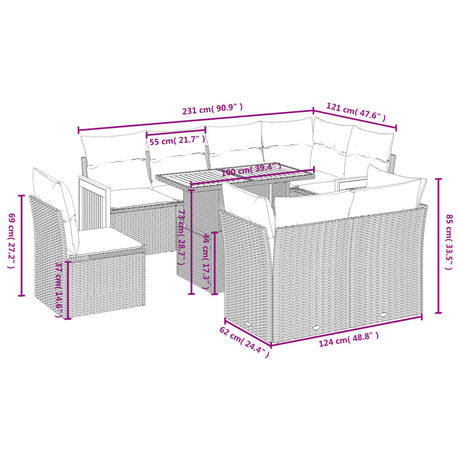 8 Piece Garden Sofa Set with Cushions Beige Poly Rattan