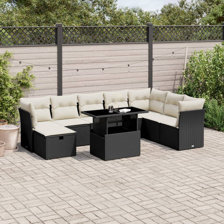 9 Piece Garden Sofa Set with Cushions Black Poly Rattan