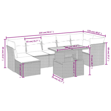 8 Piece Garden Sofa Set with Cushions Grey Poly Rattan