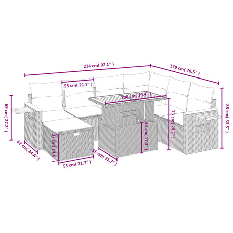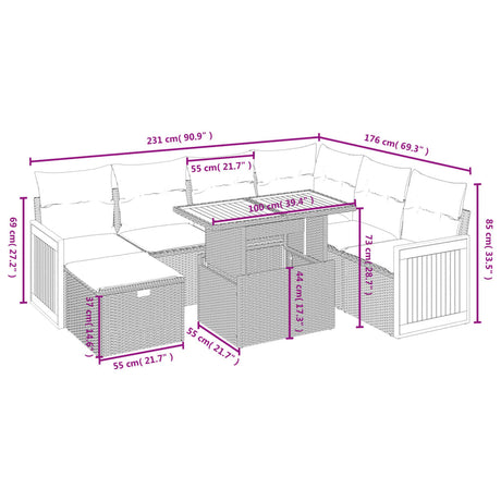 7 Piece Garden Dining Set with Cushions Grey Poly Rattan