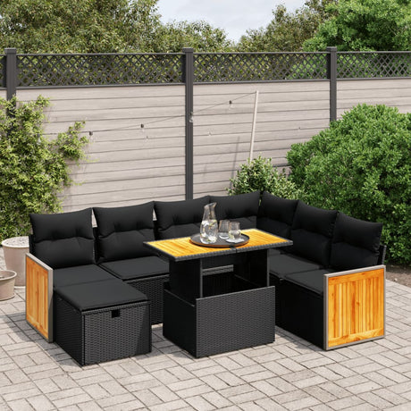 8 Piece Garden Sofa Set with Cushions Black Poly Rattan