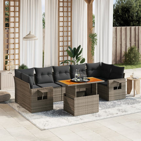 7 Piece Garden Sofa Set with Cushions Grey Poly Rattan