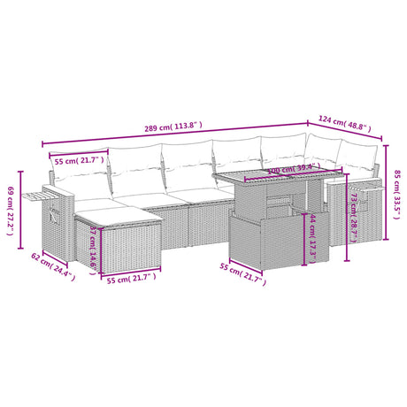 7 Piece Garden Sofa Set with Cushions Beige Poly Rattan