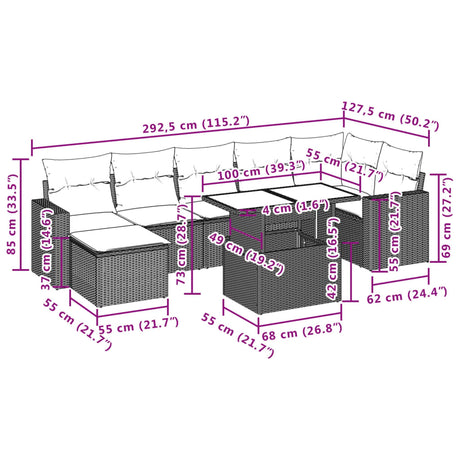 8 Piece Garden Sofa Set with Cushions Beige Poly Rattan