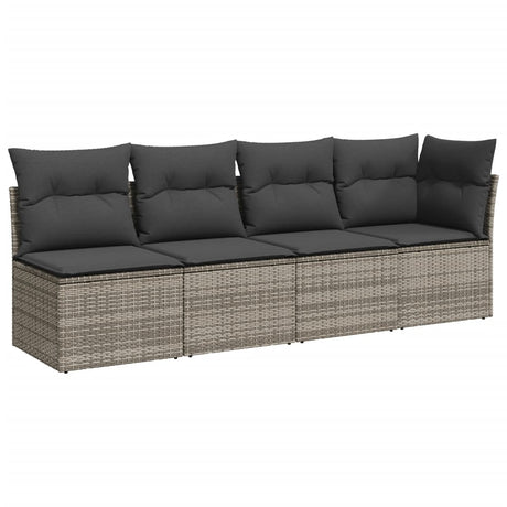 10 Piece Garden Sofa Set with Cushions Grey Poly Rattan