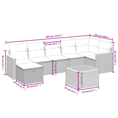 7 Piece Garden Sofa Set with Cushions Beige Poly Rattan