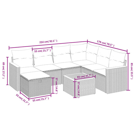 7 Piece Garden Sofa Set with Cushions Beige Poly Rattan