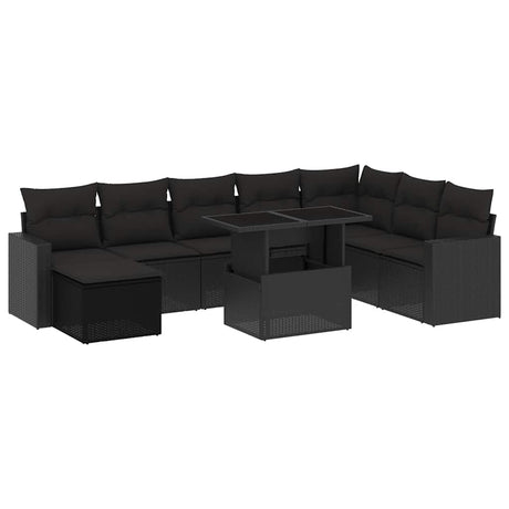 9 Piece Garden Sofa Set with Cushions Black Poly Rattan