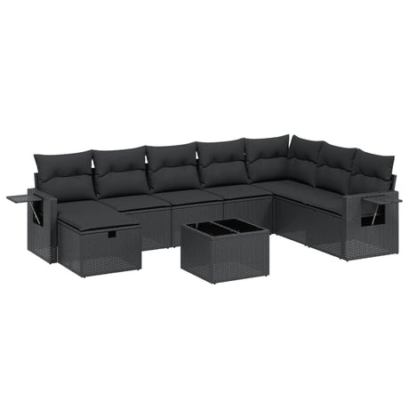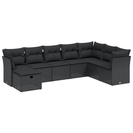 8 Piece Garden Sofa Set with Cushions Black Poly Rattan