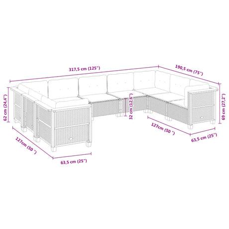 9 Piece Garden Sofa Set with Cushions Beige Poly Rattan