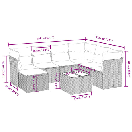7 Piece Garden Sofa Set with Cushions Grey Poly Rattan