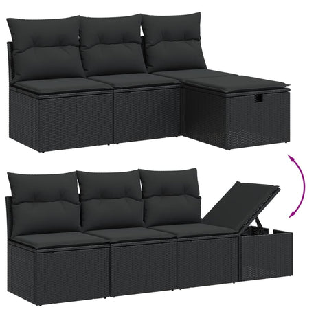 5 Piece Garden Sofa Set with Cushions Black Poly Rattan