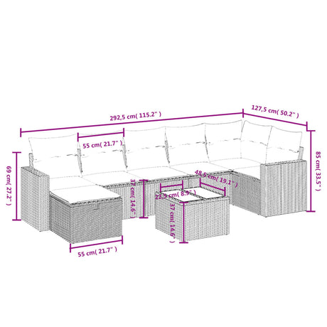 7 Piece Garden Sofa Set with Cushions Beige Poly Rattan