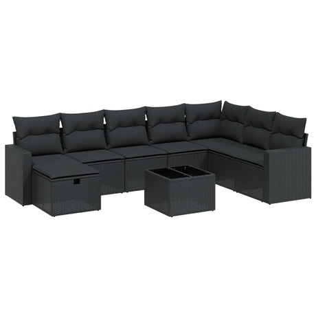 8 Piece Garden Sofa Set with Cushions Black Poly Rattan